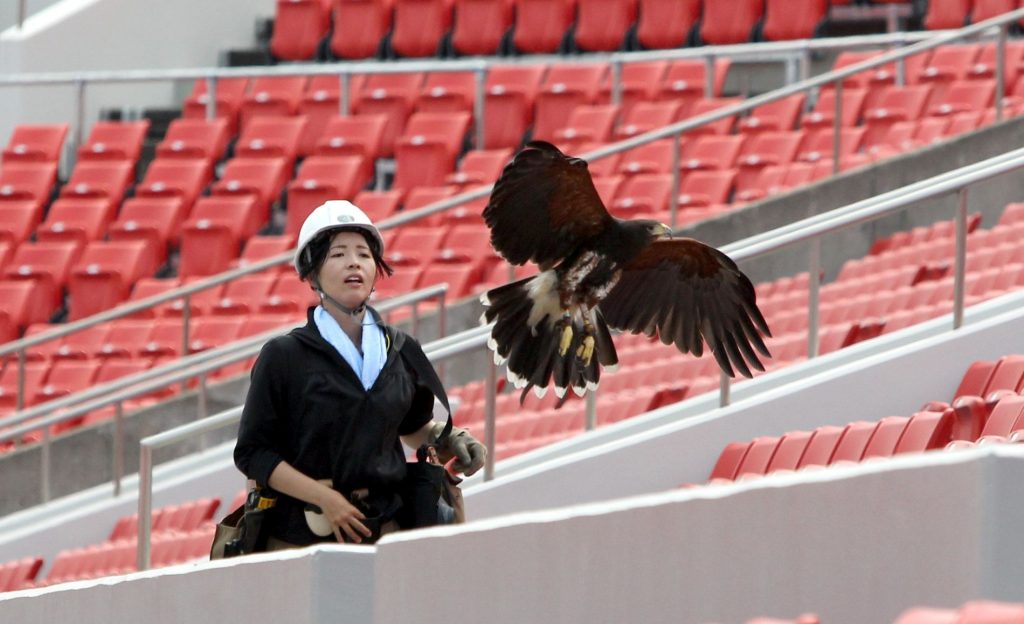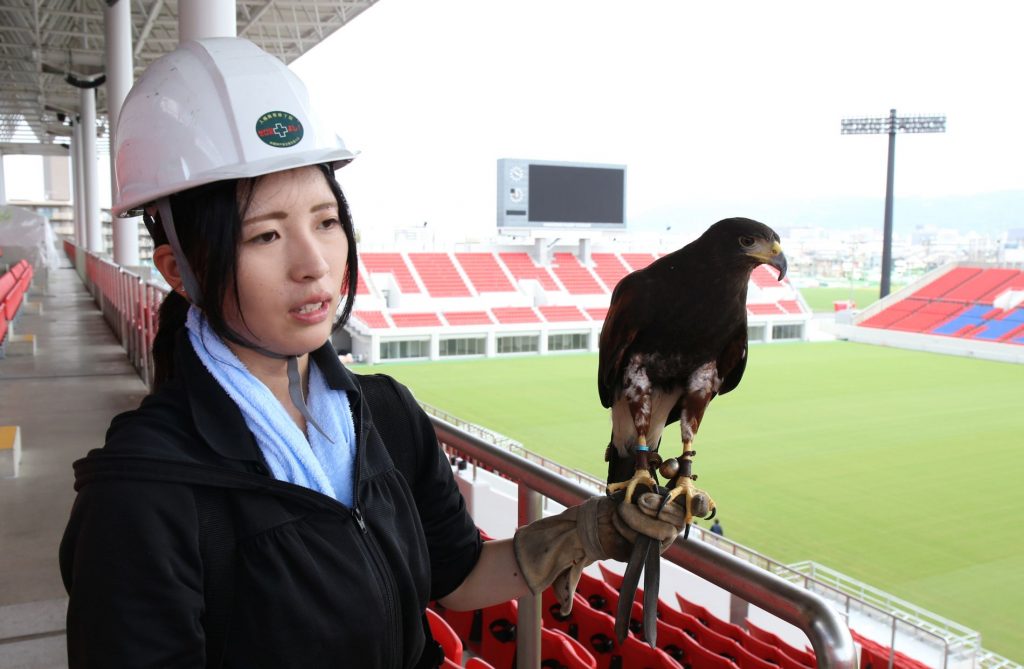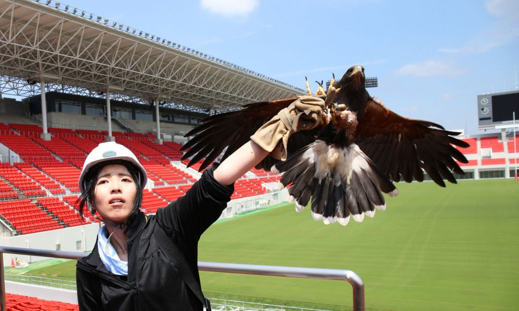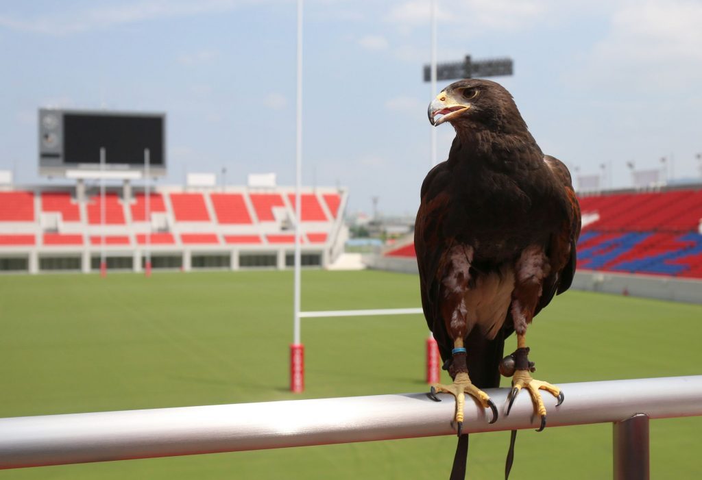 Venues in Japan are all geared up for the 2019 Rugby World Cup, which will be held from September 20. Among them, the Hanazono Rugby Stadium (Higashi Osaka, Osaka Prefecture) has shown its unique zeal for perfection by mobilizing hawks, the mighty birds of prey, for assistance.