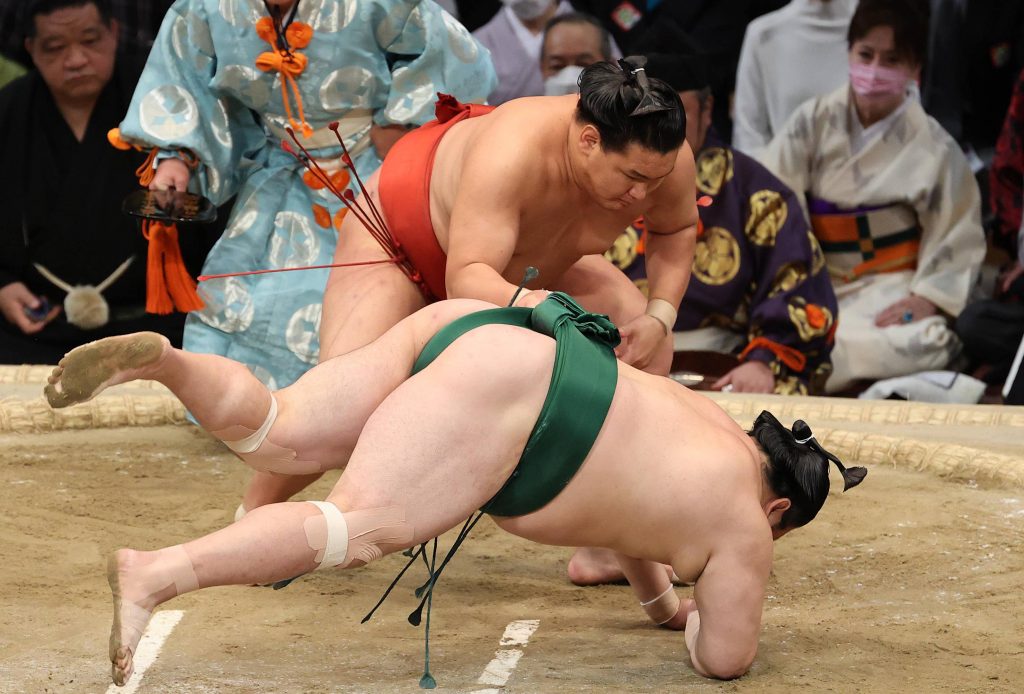In addition to staying tied for the lead, Hoshoryu also wrapped up a winning record. He still has to face the two ozeki wrestlers in the second week of the 15-day tournament.