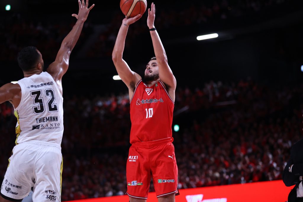 DJ Hogg, a Texas A&M alum, paced the Jets with 19 points and five assists. John Mooney chipped in with 16 points and 11 rebounds, his sixth double-double of the new season. Yuta Watanabe had a 14-point performance.