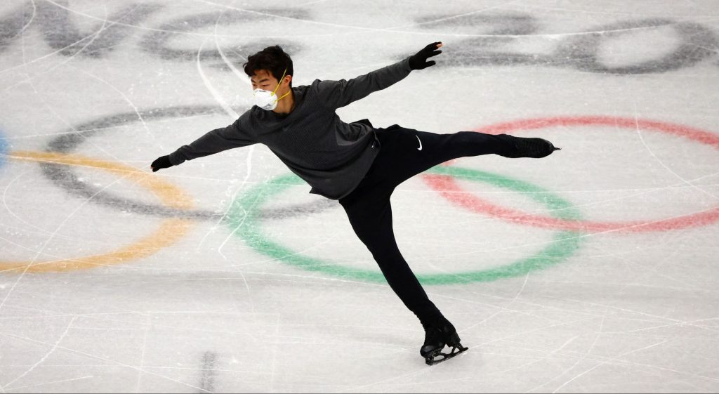 Three-time world champion Nathan Chen participated in the morning session on Tuesday, February 1 at Capital Indoor Stadium and worked on his short program to “La Boheme” with a jump layout of quad flip, triple axel, quad lutz/triple toe combination all the while wearing a mask.