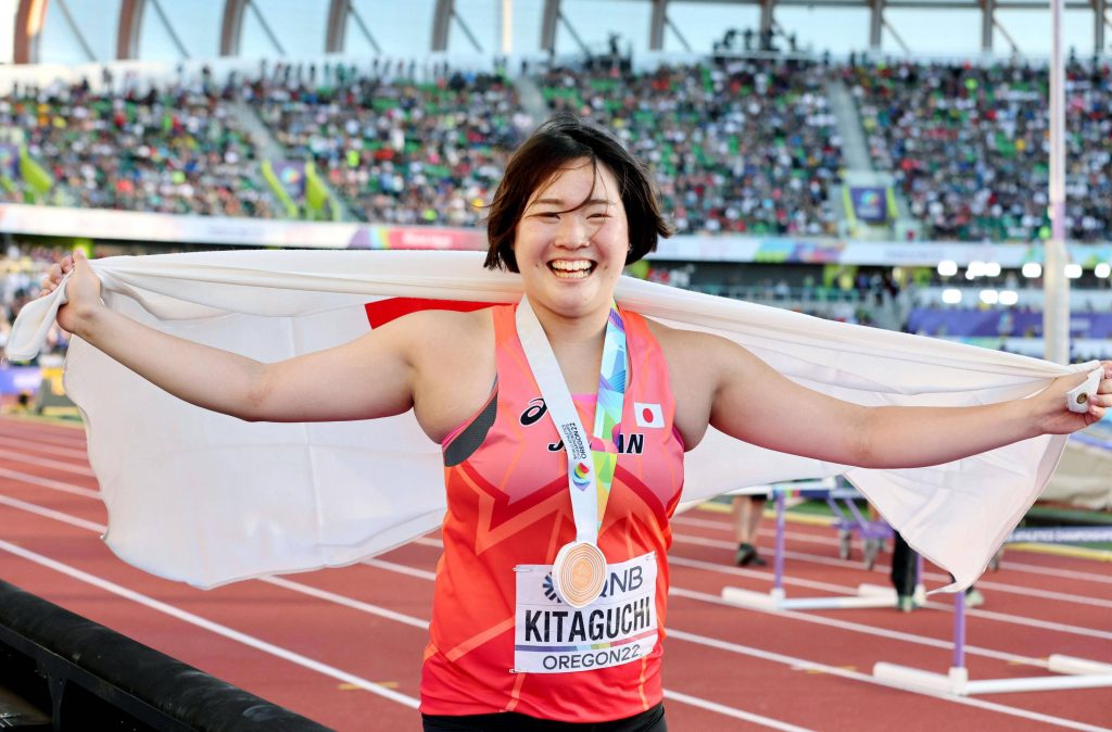 Kitaguchi, who trains under coach David Sekerak in the Czech Republic, wept with joy when it became clear that she had become the first Japanese woman in history to win a medal in a throwing event at the world championships or Olympics. She was so emotional after her achievement that she continued to cry even during her post-competition interview.