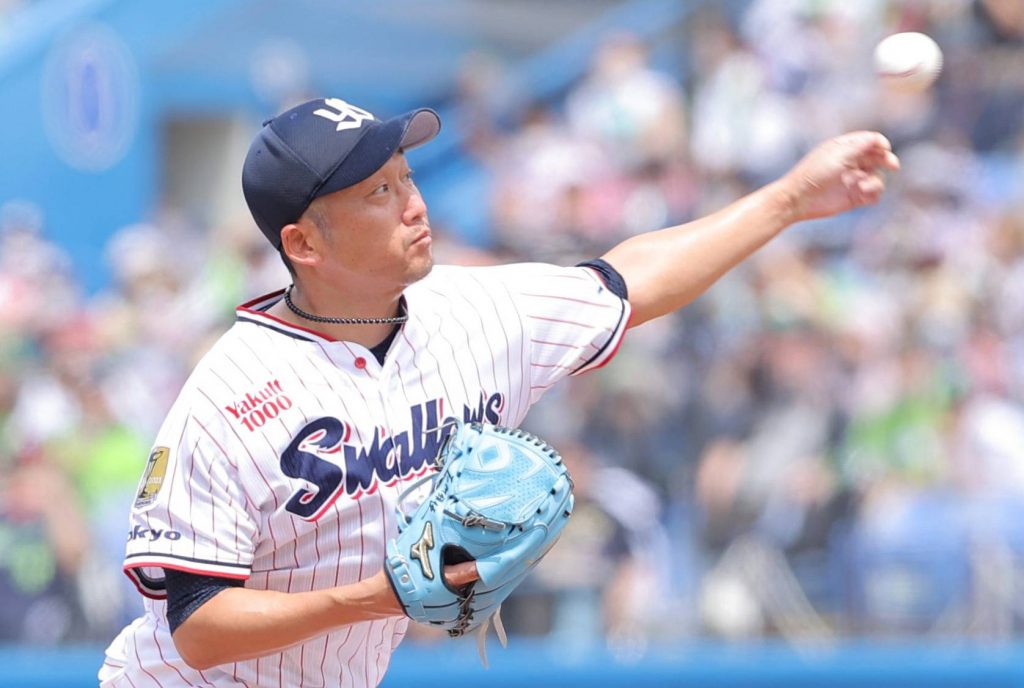 Ishikawa, currently the oldest pitcher in NPB, has a record of 181 wins and 179 losses over 20 seasons with the Swallows.