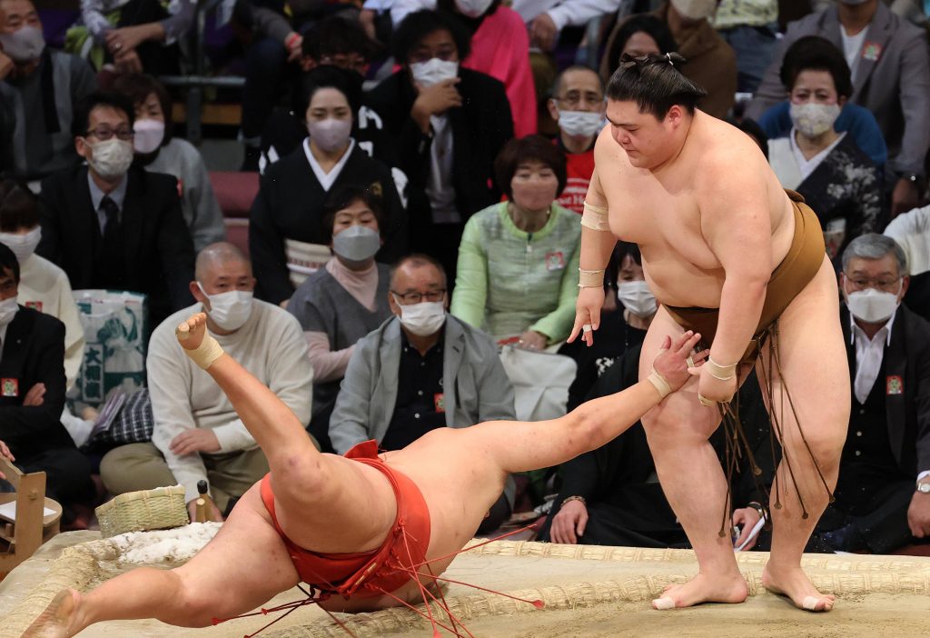 Takakeisho picked up his ninth win in 12 matches. Fifth-ranked maegashira Nishikifuji slipped to 8-4.