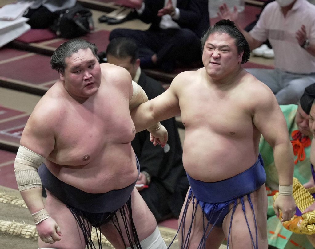 In other major bouts, sekiwake Mitakeumi overpowered Kotonowaka when he came bursting out of the tachi-ai and drove the young No. 3 maegashira out in a bout that resembled a practice session.